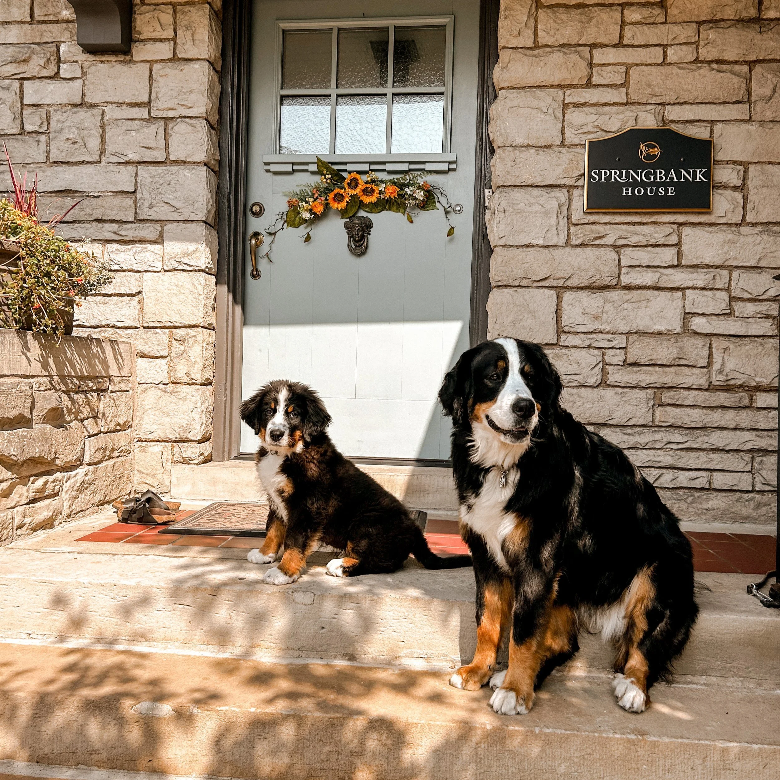 Springbank House is home to many things, but perhaps the most popular residents are Ella and Ridley. The two Bernese Mountain Dogs are lovable and lovely, happy inhabitants of this historic home and greet our guests with big wags in anticipation of (not mandatory) pets.